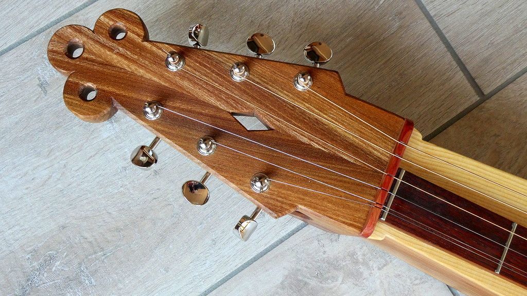 Die Aufteilung der Saiten ist variabel. Meistens befinden sich drei Spielsaiten über dem Griffbrett, wobei die erste als Doppelsaite für mehr hellen Klang sorgt. Die etwas weiter zur Seite gesetzten Bordune summen automatisch mit Gebrumm.